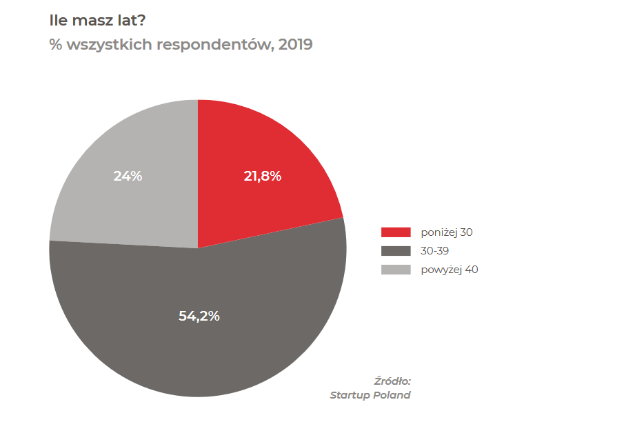 Analiza wieku założycieli wśród amerykańskich startupów przedstawiona przez autorów badania ujawnia, że w USA średni wiek osób zakładających nowe przedsiębiorstwa wynosi około 42 lata. To zgodne z wynikami innych badań dotyczących różnych typów nowo powstałych firm. Nawet biorąc pod uwagę jedynie sektor wysokich technologii – nierzadko kojarzony z młodymi, energicznymi ludźmi – średni wiek założycieli w zależności od definicji wysokiej technologii waha się od 42 do 45 lat. W badaniach skupiono się na Kalifornii, Massachusetts i Nowym Jorku, które odpowiadają za sporą część działalności startupów o szybkim wzroście w USA. A jak jest w Polsce?