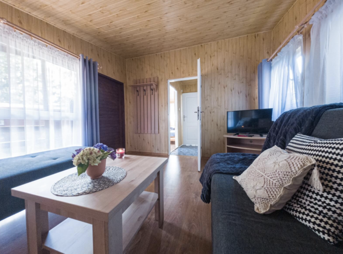 Goście mieszkają w drewnianych domkach letniskowych. Do wyboru mają dwa rodzaje domków – z jednym lub dwoma wejściami. W każdym z nich znajduje się łazienka, telewizor LCD, taras oraz mini aneks kuchenny z czajnikiem elektrycznym, lodówką i kompletem sztućców. Dodatkowo w domkach czekają na gości zestawy mebli ogrodowych oraz sprzęt plażowy. Dostępne są również domki z podjazdami dla osób poruszających się na wózkach inwalidzkich.
