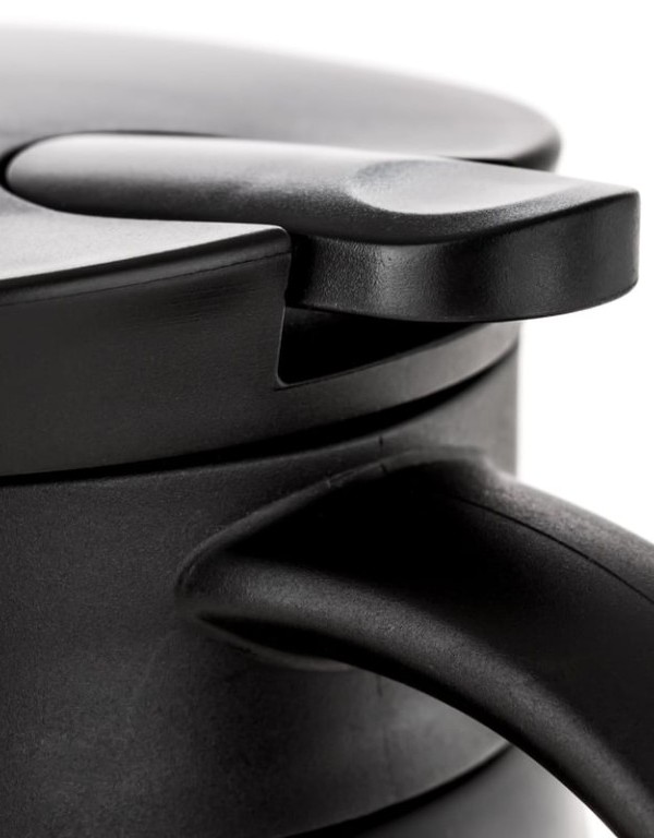 Dzbanek, wykonany ze stali nierdzewnej i tworzywa sztucznego, ma czarny, elegancki design, który wpasuje się w każde otoczenie — od kuchni domowej po obozowisko na łonie natury.