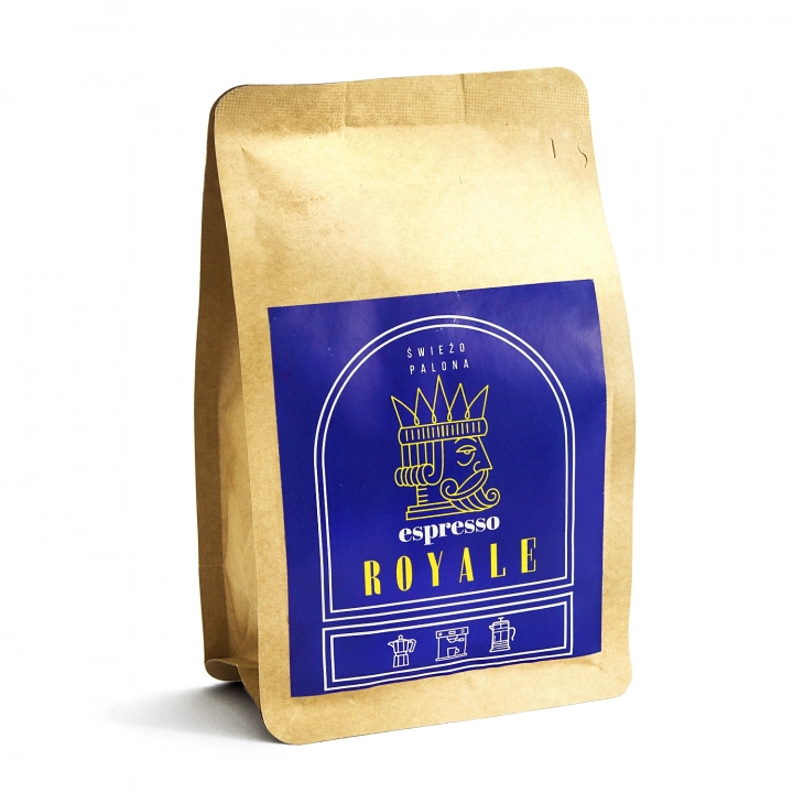 Espresso Royale to starannie dobrana mieszanka najszlachetniejszych odmian arabiki, z pełnym i bardzo delikatnym smakiem. Zapachowa intensywność tej kawy tworzy perfekcyjną harmonię z gamą aromatycznych składników, tworząc niezapomniane akordy czekolady, pieczonego chleba, migdałów i suszonych owoców. Wyjątkowość mieszanki podkreśla długo utrzymująca się pianka o charakterystycznym odcieniu.