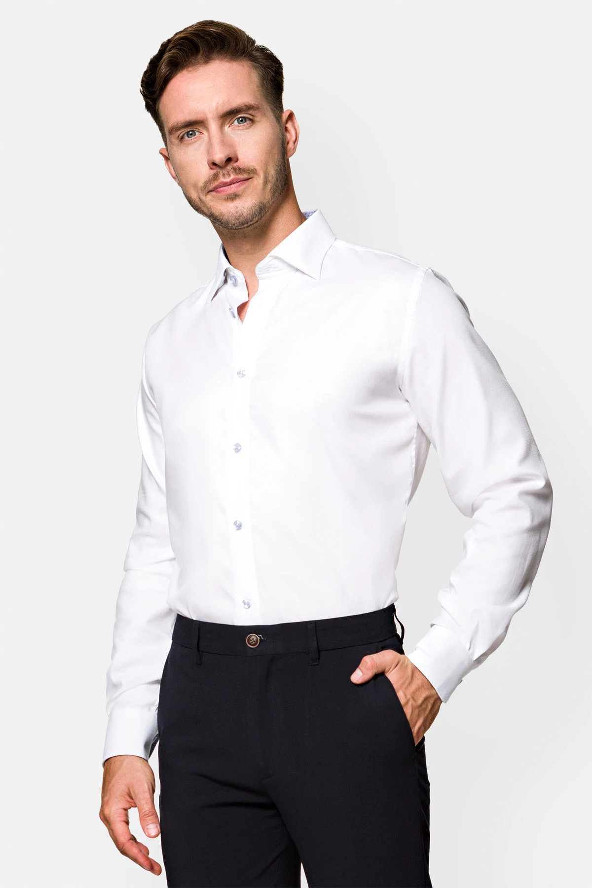 Zdecydowanie dla tych, którzy cenią sobie klasyczne kroje, wybór koszuli z białej bawełny będzie strzałem w dziesiątkę. Delikatny materiał i uniwersalny kolor z pewnością przypadną do gustu każdemu mężczyźnie, niezależnie od wieku. W końcu biała koszula to podstawa eleganckiej garderoby.